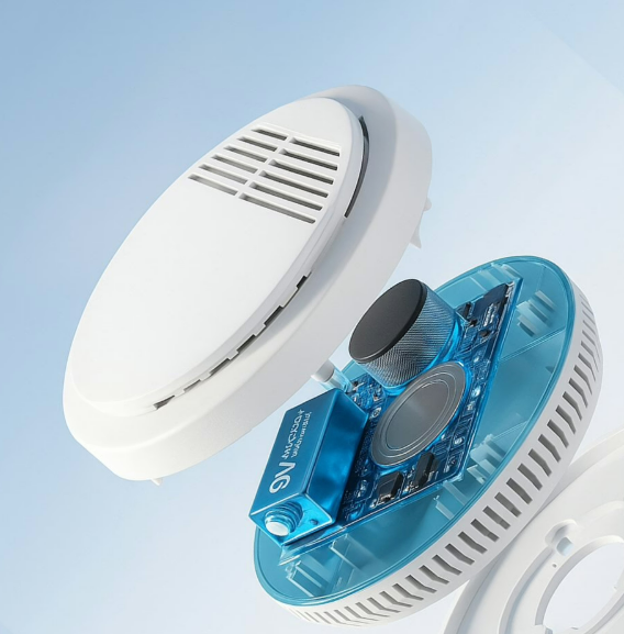 iDetectPro uses infrared photoelectric sensing to detect smoke quickly and reliably. Inside a compact optics chamber, a low-power infrared LED fires a beam across a narrow path while a photodiode watches for light that scatters off smoke particles. When smoldering fires eject tiny particles into the chamber, those particles scatter the IR light toward the sensor; when the signal crosses a threshold, a precise circuit triggers the 110 dB alarm. Smoldering fires spread smoke silently for minutes, so this fast response can buy precious minutes for escape and early cooling of the home. To reduce false alarms, iDetectPro combines a dustproof and mothproof seal with refined optics and smart signal processing. The design keeps dust and insects out of the sensing path, and the firmware analyzes how quickly and how densely light is scattered, helping distinguish real smoke from ordinary dust or ceiling drama. The result is precision detection with far fewer nuisance alerts. Energy-efficient sensors mean long-lasting batteries or extended life in wired installations, while the hardware design meets modern safety standards. The device's globally compliant build ensures reliable performance in homes, rentals, and multi-unit buildings. In short, iDetectPro delivers early, accurate smoke detection, fewer false alarms, and the peace of mind that comes with a safer living environment.